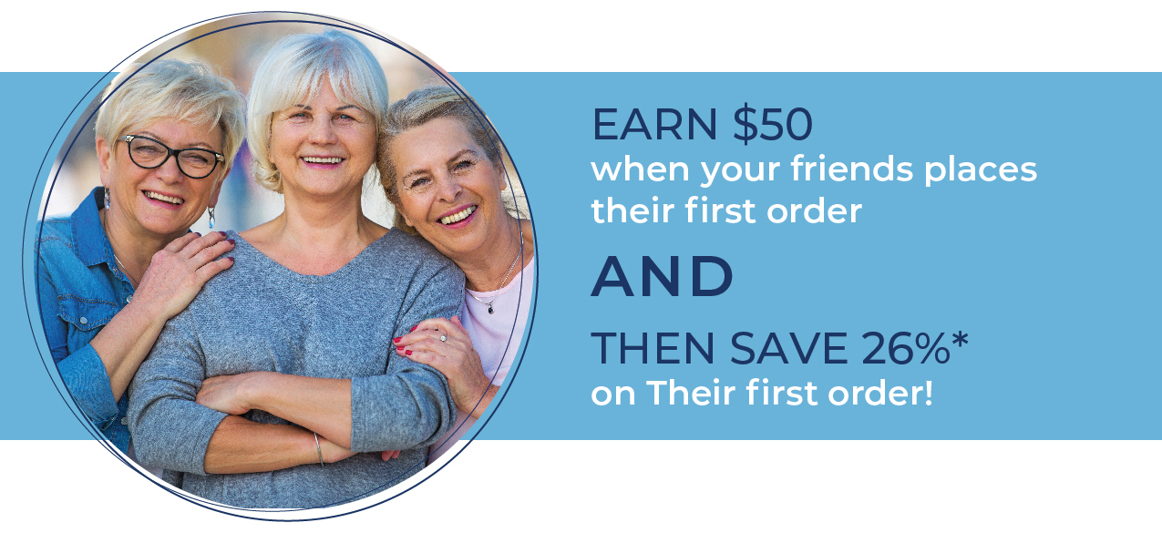Our Referral Rewards Program is designed to easily earn customers like you cash rewards. When they place their first order and add that you referred them, they save 26% AND you will directly be credited $50. Then, use the rewards you earned to pay for your own orders. The more first orders you refer, the more rewards you receive. Don’t wait any longer! Help your friends and family save on their prescription medications and have them use coupon REFER26DEAL today.